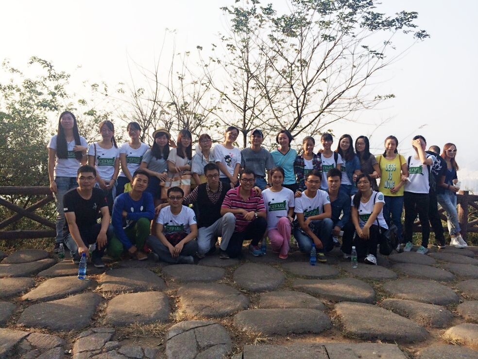 22nd, Oct. 2014 is a beautiful day with the sun shining in the sky and the breeze singing in the air. In this wonderful whether, faculty and students from the big family of CEFMS climb the Yue Lu Montain together in high spirit despite its craggedness and steepness, enjoying the wonderful views while breathing fresh air and relaxing themselves among the woods. Along the way, people help each other with mutual encouragement and would not leave any one behind. We laugh heartily and gasp in admiration of the beauty of nature, leaving all the worries and agonies behind. In this great mood, even the hard climbing transformed into something relaxing and delightful. Although the path to the top is rugged, but we never stopped or quit; when we tired, we just have a short break, then move on. We learnt from the process that this is exactly the attitude we would adopt towards our life: whenever we encounter any obstacles or hardship, we should let them intimidate us; we take a rest, enjoy the scenery and aim towards the top incessantly.